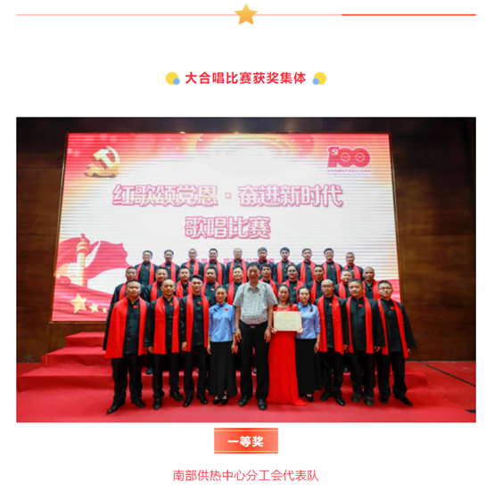 “在灿烂的阳光里,复兴的征途愈发的闪亮。在砥砺前行的路上,还留着中华儿女并肩携手的激昂。走向复兴,我们在崭新的时代里热血飞扬,走向复兴,我们满怀着如阳光般炽热的光芒与希望。”来自南部供热中心分工会的大合唱《在灿烂的阳光下走向复兴》,把现场氛围推向高潮,赢得阵阵掌声。